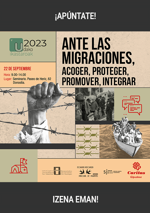Estas son, entre otras, las preguntas que nos haremos en este curso de verano organizado por el Instituto Pío XII, la Pastoral de Migrantes, el servicio de Migraciones de los Jesuitas y Caritas Gipuzkoa. Esta quinta edición se enmarca en la Jornada Mundial de las Personas Migrantes y Refugiadas que se conmemora el 24 de septiembre de 2023 y que en esta ocasión lleva como título: Libres de elegir si migrar o quedarse.